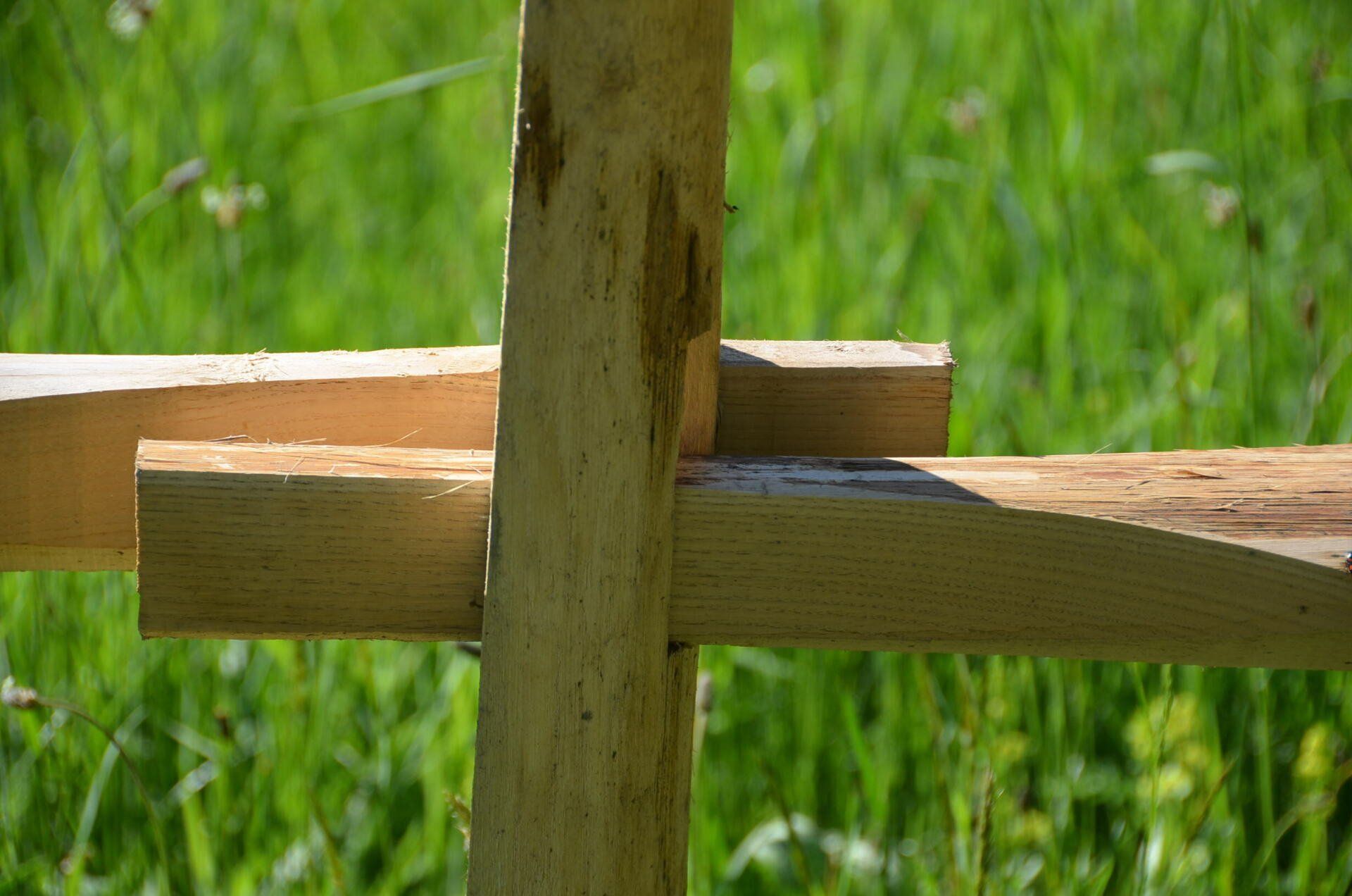- Creusez le trou bien profond et mettez-y le poteau. Ne tape pas trop fort pour éviter de fendre le poteau.