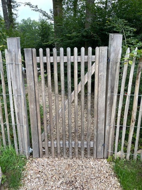 Le portail simple Elégant est un bon accès à votre jardin ou votre potager. C'est une belle combinaison avec les ganivelles, les panneaux jointifs ou sémi-jointifs.